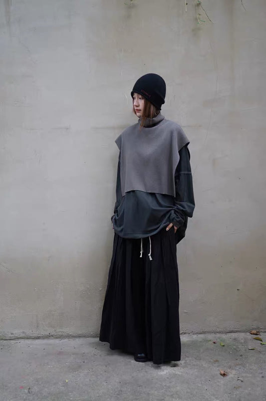 25秋冬 纯羊毛坑条纹高领围脖披肩