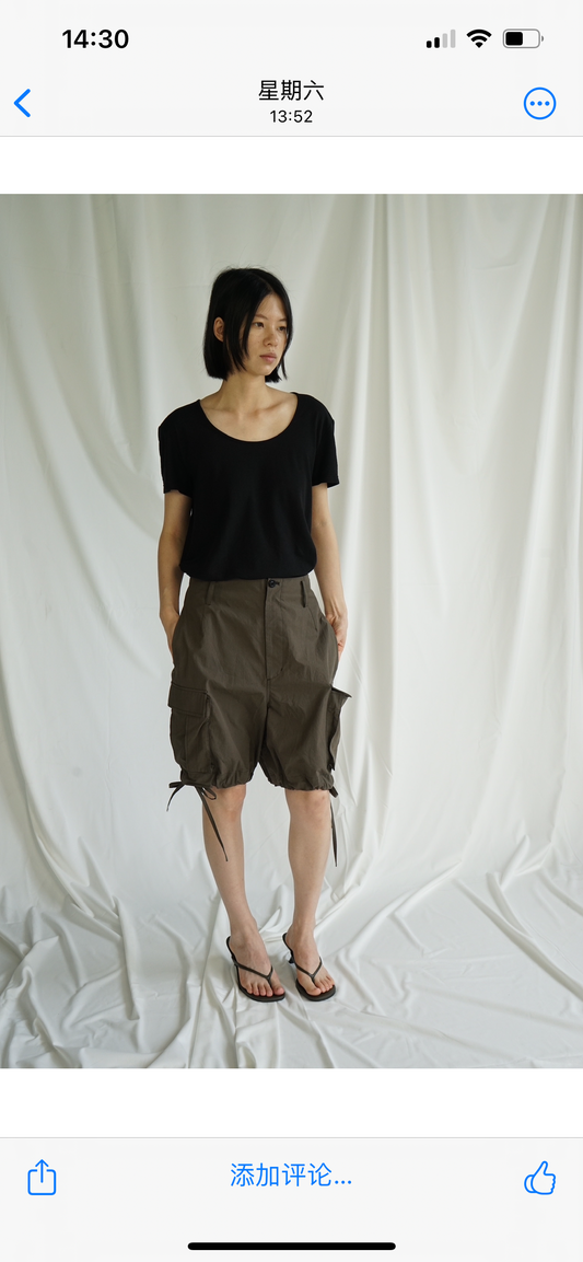 25春夏 纯棉松紧腰松弛感大口袋束脚抽绳短裤