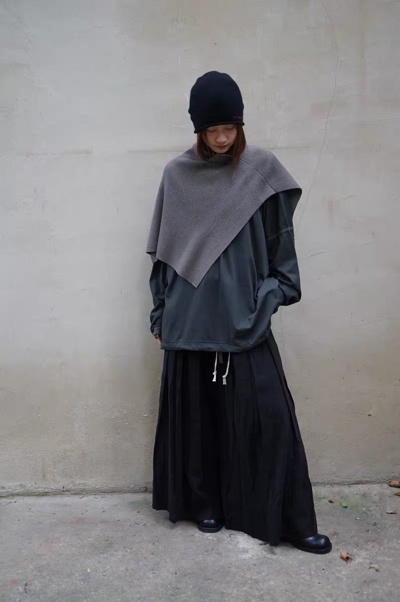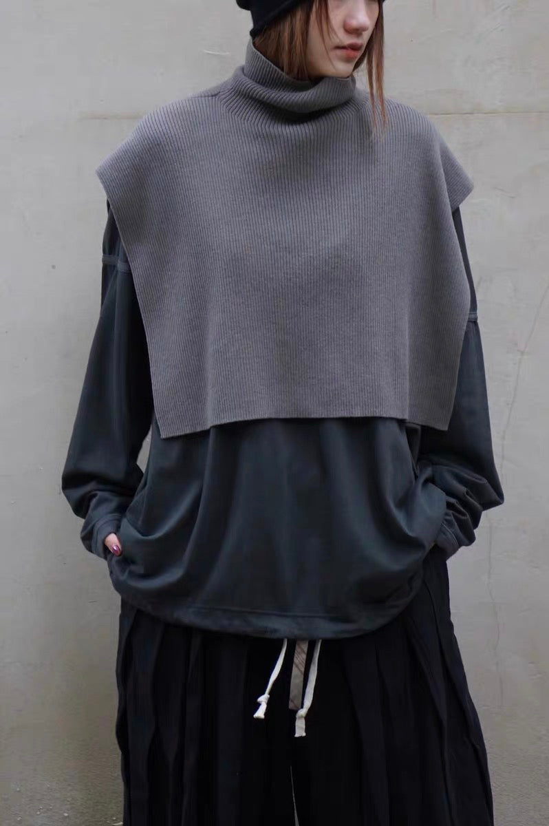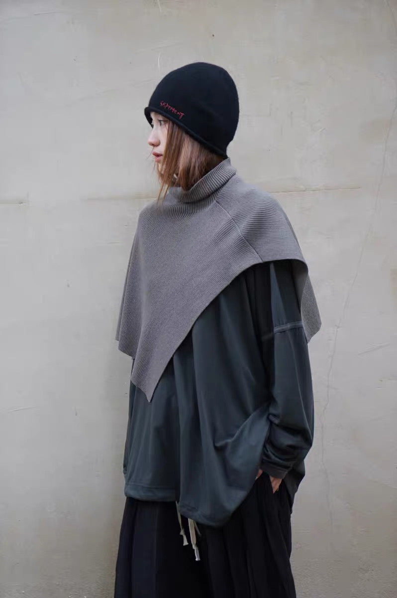 25秋冬 纯羊毛坑条纹高领围脖披肩